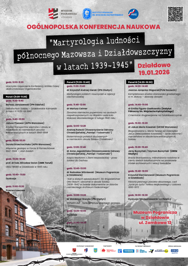 📅19 stycznia 2026 r. odbędzie się Ogólnopolska Konferencja Naukowa „Martyrologia ludności północnego Mazowsza i Działdowszczyzny w latach 1939-1945„.